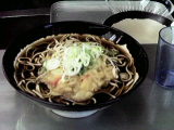 つゆの温度が高めであつたので、大汗をかきながらの晝食になつた。かつを出汁の風味は出てゐるが返しの味が少々足りないやうな印象である。一方めんは隨分と柔い。全體として凡庸な印象である。