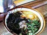 お午の高架プラツトホームは白けた雰圍氣であつた。昼飯でも喰ふかと云ふ氣持ちで月見を頼むと、具が豐富な蕎麦が出て來た。その丼鉢の寫眞を撮つてゐたらおばちやんがお箸の使ひ方を教えて呉れる。どうやら外國人と間違へられたやうで、苦笑ひの一杯であつた。