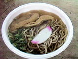 特急通過を待つ時間に蕎麦を喰ふ。寒風の吹き拔けるホームには、同じ目的で列車を降りた客が集まる。「たぬき」とだけ云つて注文する人もあるが、品書きには「きつねそば」とある。 發砲ポリスチレンFS類の噐に入つたつゆが熱い。つゆの熱さと冷たい夜風の對比を味はふ事は出來るが、つゆ自體は薄味で特筆すべきものが無い。また麺がどうも小生の好みでなかつた。