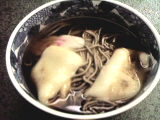 「力そば」といふ餅入りの蕎麦がある。充分煮込まれて柔らかくなつた餅が二切れ入つてゐる。それを喉につまらないやうに慎重に喰つた。こんな蕎麦が喰へるのも歯があればこそである。この店は刻み葱と若芽が入れ放題で氣前が良い。