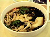 品書きがハングルなので何と云ふ名か知らない。おばちやんに聞くと「サムチエンオペクヲン」との返答であつた。これは値段の話で小生の云はんとする意は最後まで通じなかつた。 これまでの經驗から察すれば「きざみ蕎麦」に相當するだらう。具には湯葉、若芽、蟹蒲鉾などが使用され、つゆは喉の手前で感じる豐かな旨味の昆布風味である。純日本蕎麦との相違は鐵製の箸と匙を用ゐて喰はなければならぬ事と、澤庵が付いて來る事か。エキゾチツクな一杯である。 ![]() 本驛は例外なので、評價をチヤートに示す。左からつゆ、めん、聰合。青線が小生の理想で桃色が當驛の蕎麦。 |