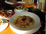 そのやうな中、アムステルダム驛2番ホームでパスタを出すカフエーを見附けて飛び込んだ。しかしスパゲチーを注文しても無いと云ふ。諦めて店を出やうと思つたら、それに近いパスタならあると云ふのでこの一品が來た。